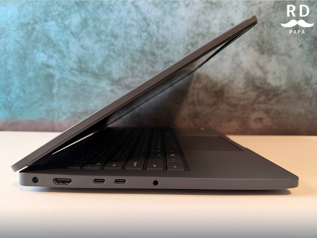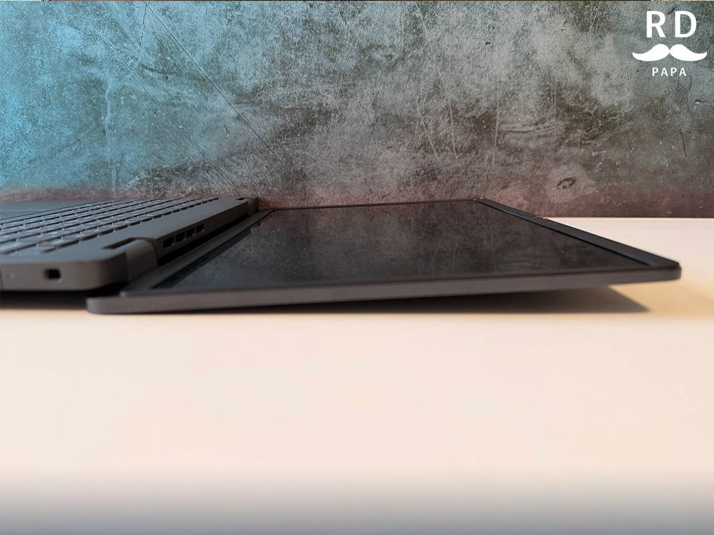 外觀設計上,Magnetite 磁石黑的霧面紋理摸起來手感不錯,也不容易沾指紋。1.36kg 的重量搭配 14 吋 16:10 螢幕,攜帶性與可視面積取得了不錯的平衡。螢幕的 400nits 亮度在一般辦公環境下綽綽有餘,但如果是在戶外強光下使用,還是會稍嫌不夠力。