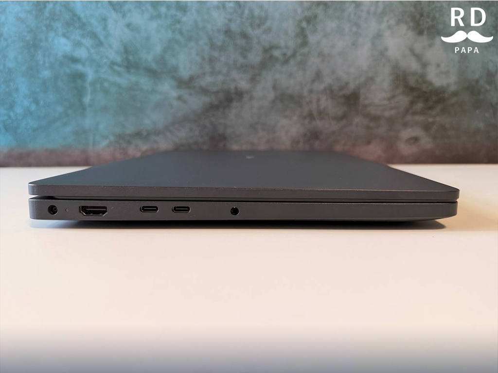I/O 方面真的是誠意十足,Thunderbolt 4、USB-C、兩個 USB-A、HDMI 2.1、RJ45 全部到齊,出差帶這一台基本上不太需要額外的 hub 或轉接器。比較特別的是它保留了傳統的 4.5mm DC 電源孔,同時也支援 USB-C PD 充電,等於給了使用者兩種充電方式的彈性。