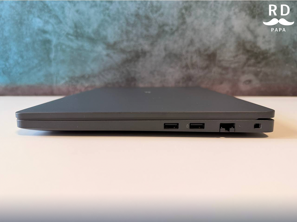 | 連接埠與周邊 | 1× DC 電源孔(4.5mm)、1× Thunderbolt 4(USB-C)、1× USB-C 3.2 Gen 2(DP Alt / PD)、1× HDMI 2.1、2× USB-A 3.2 Gen 1(其中一個支援 PowerShare)、1× RJ45 Ethernet(1GbE)、1× 3.5mm 耳機/麥克風孔 |